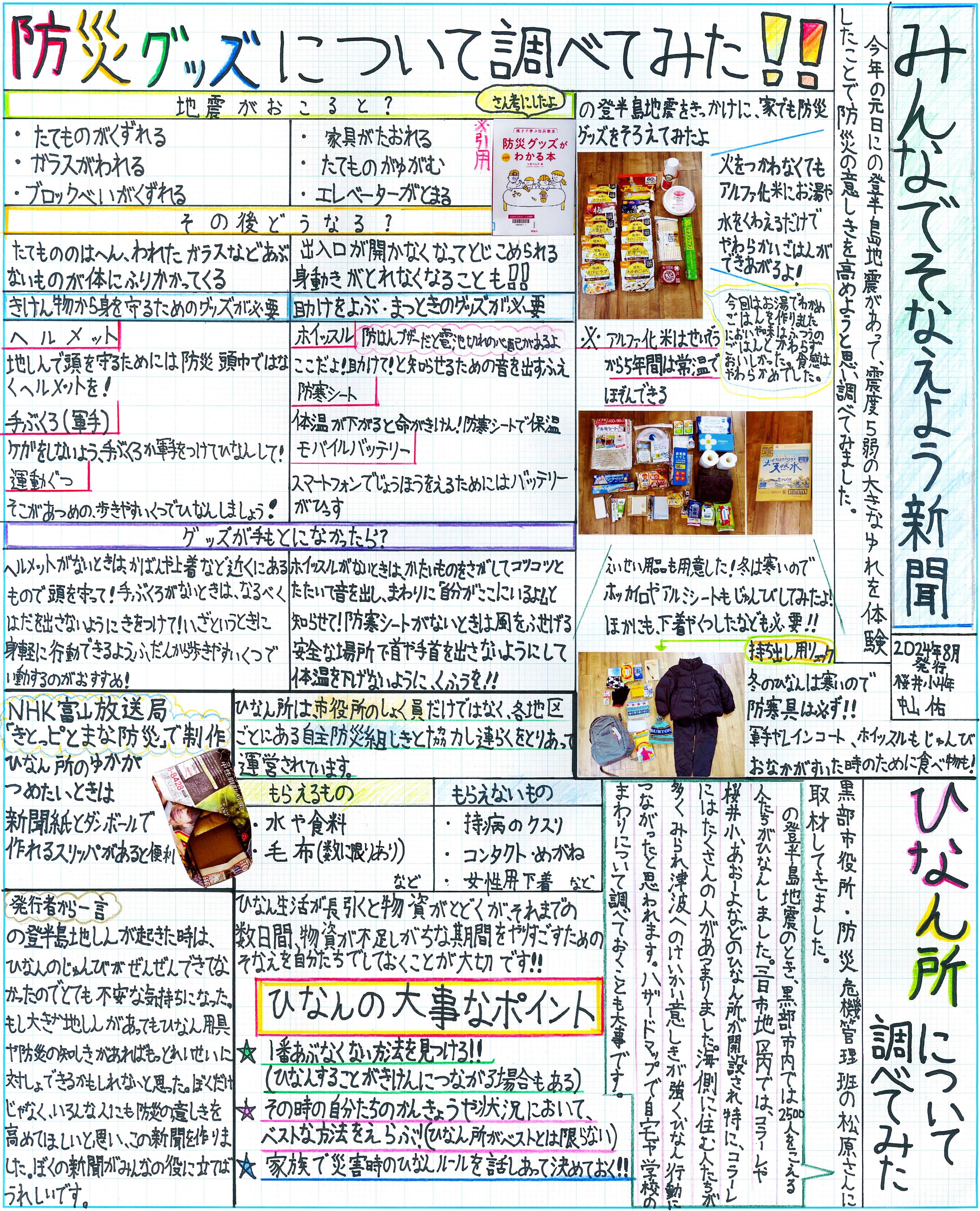 澤田心晴、吉田穂花、岩﨑健(井波4)鈴木理子(福野4)山本えん、宮島鈴(同4、共同制作)