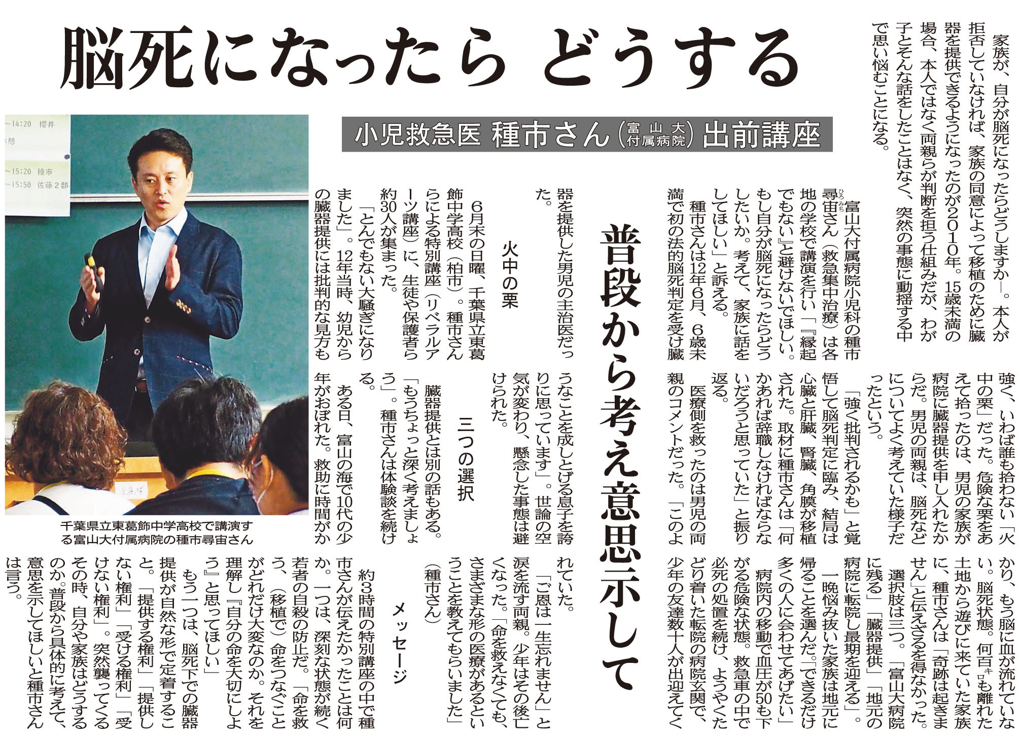「家族が、自分が脳死になったらどうしますか」。こんな問いかけから始まるこの記事は、小児救急医の種市尋宙さんによる、中高生とその保護者に向けた特別講座について書かれたものである。