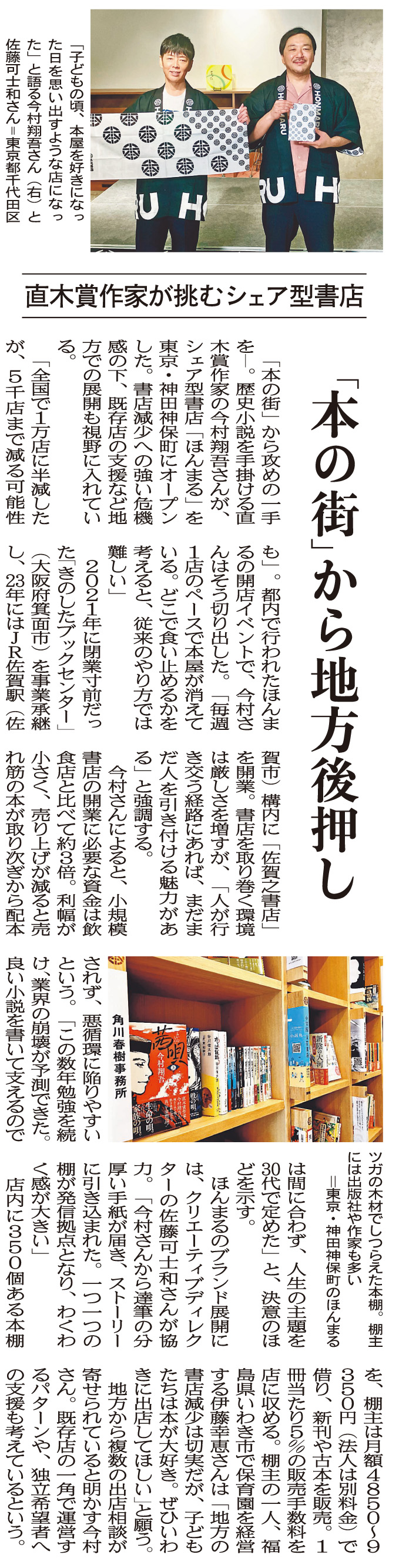 「『本の街』から地方後押し」。東京都から、喜ばしい話題が届いた。小説家の今村翔吾さんが、シェア型書店(=本棚を間借りできる書店)を立ち上げたという。読書家である私にとっては、非常に胸が高鳴る内容である。その一方で、私の身近にある「本の街」は、衰退しつつある。