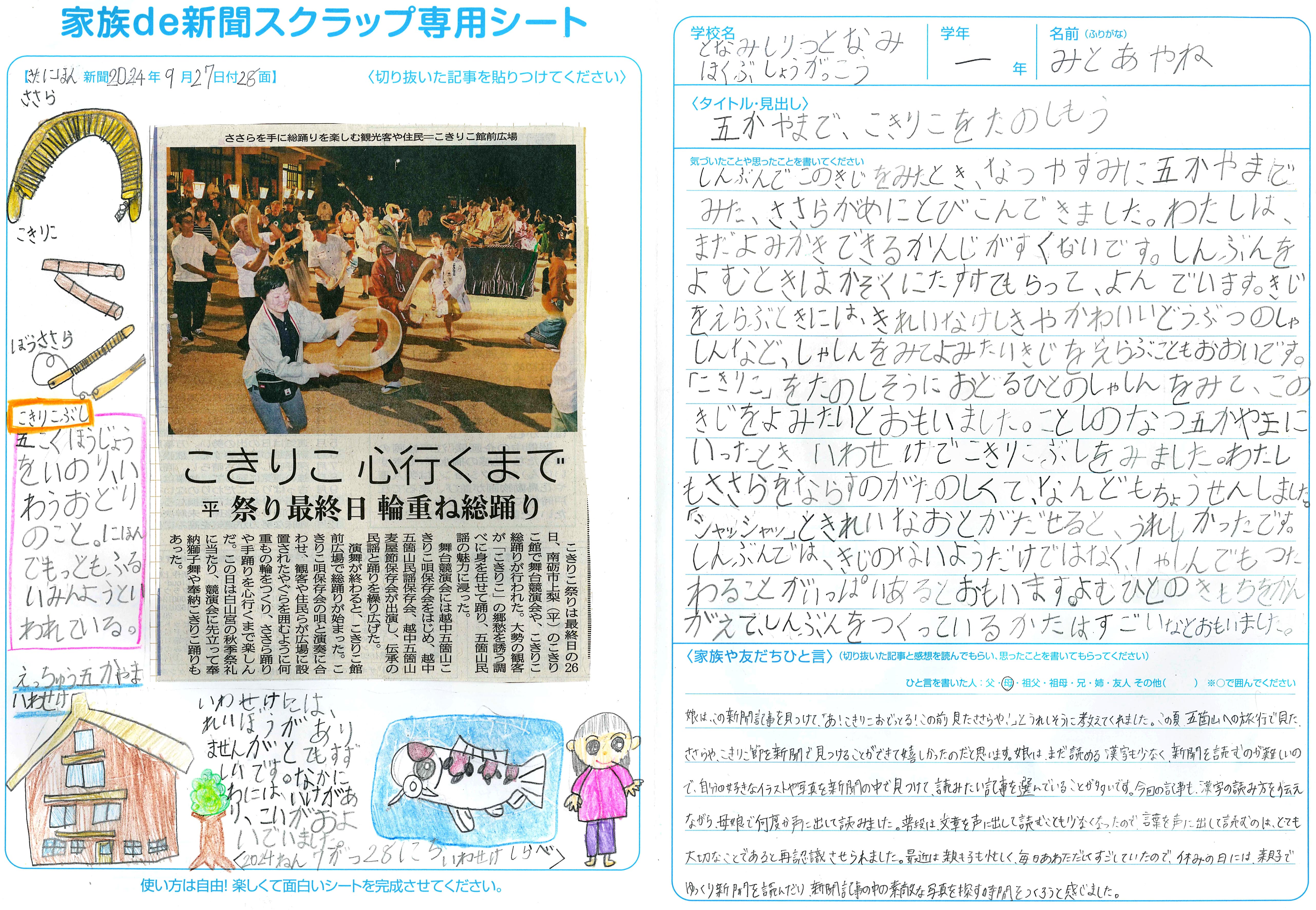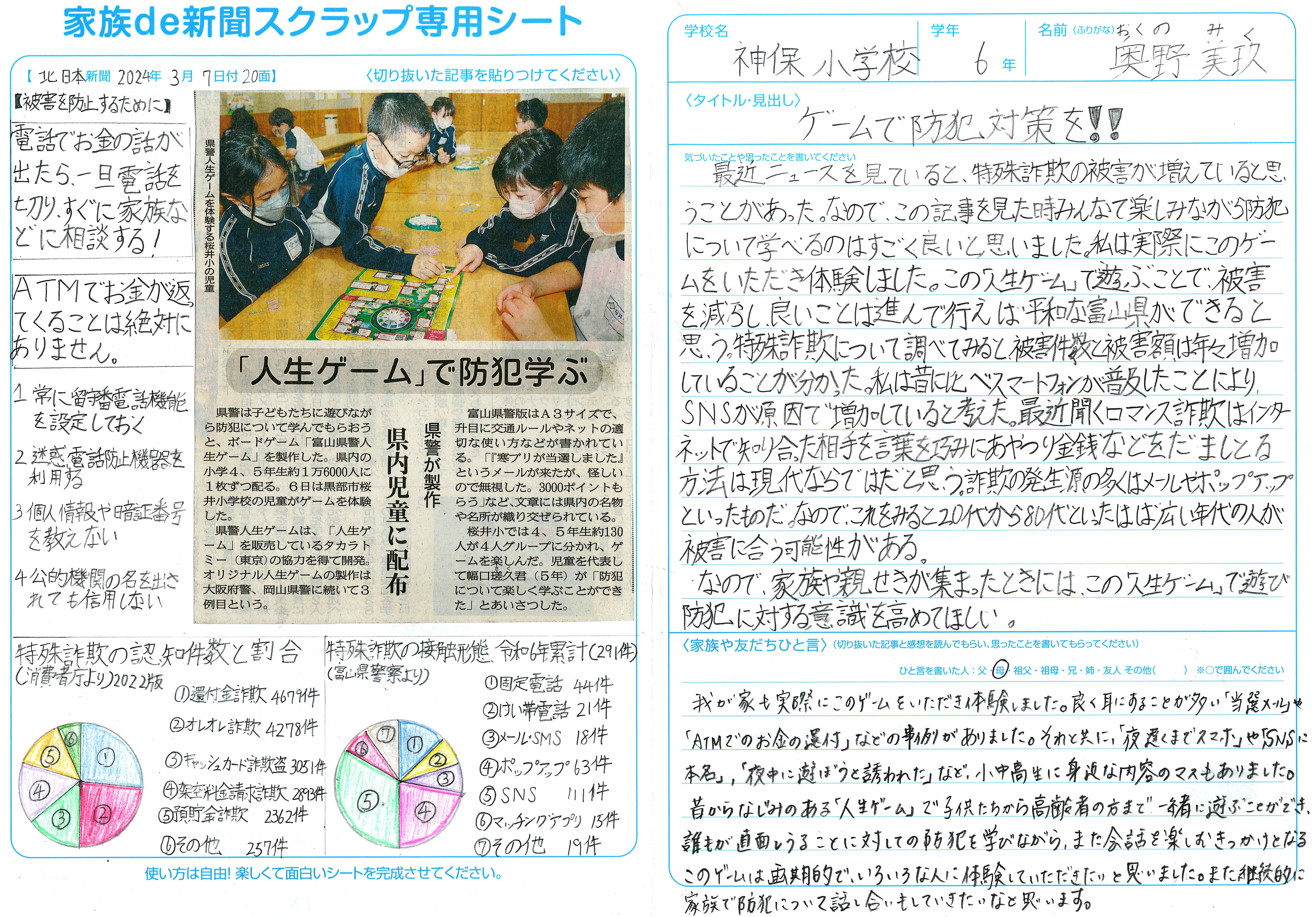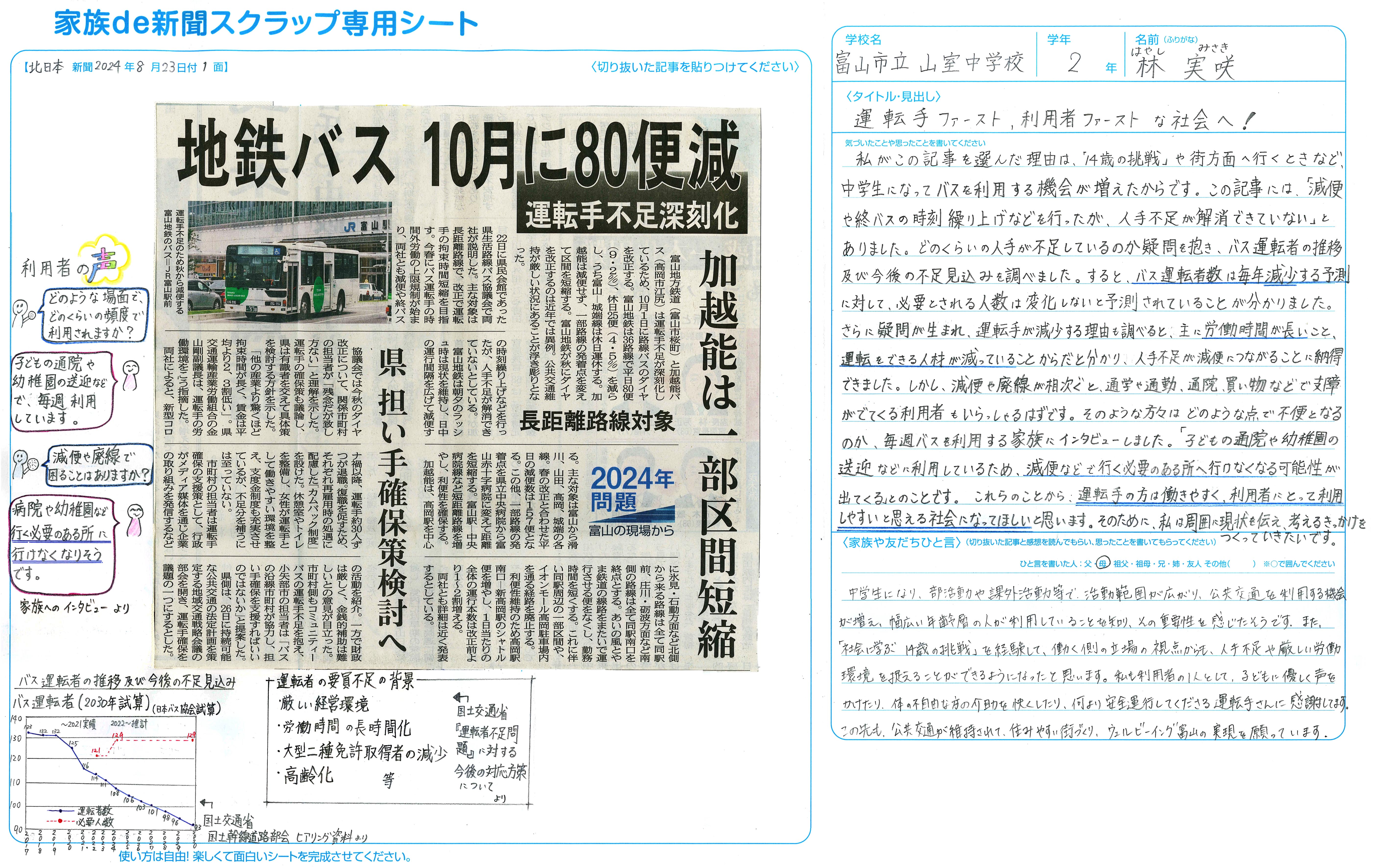 2024年度の「わたしの新聞コンクール」は、「かべ新聞」「家族de新聞スクラップ」「新聞感想文」の3部門で応募を受け付けました。