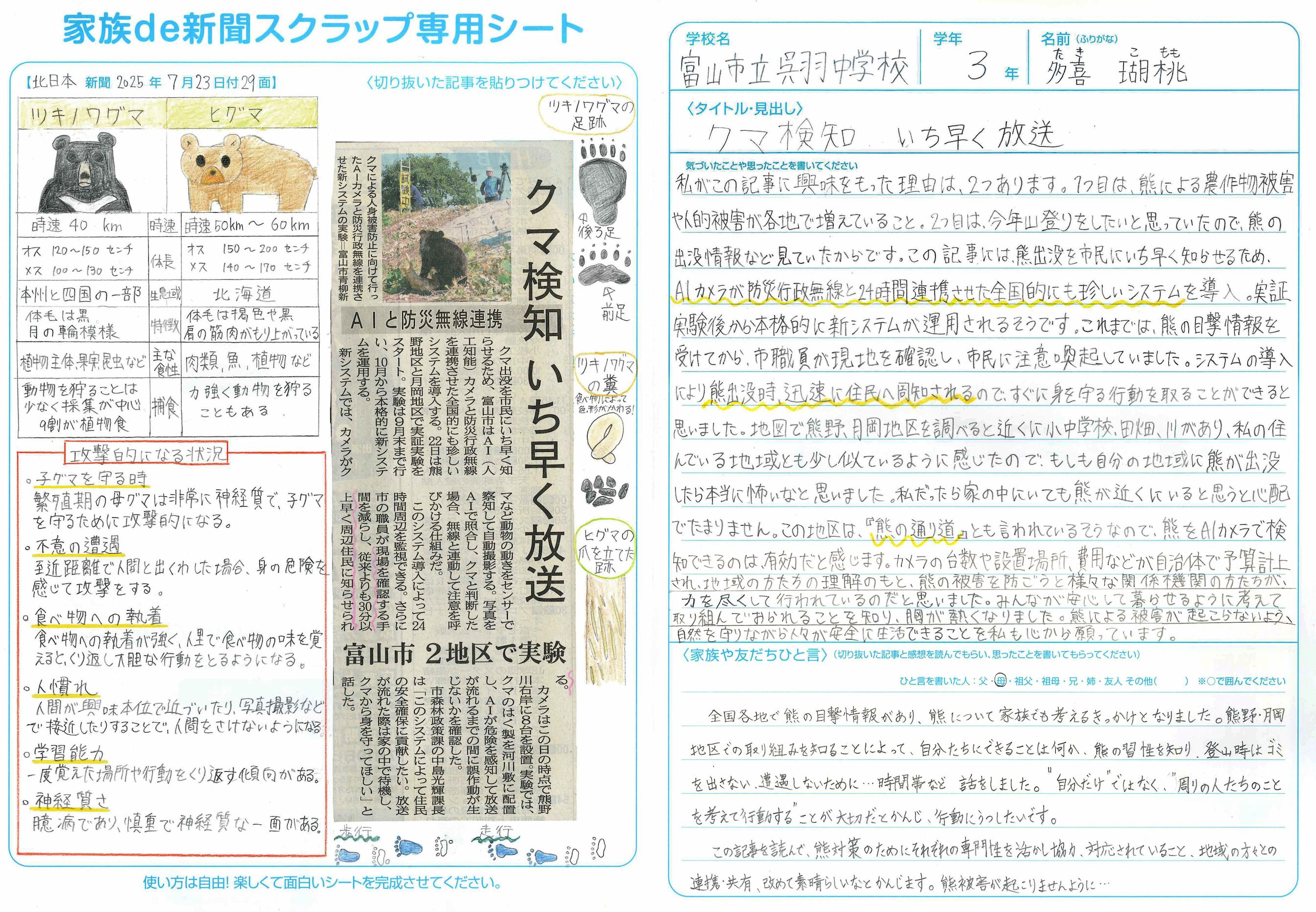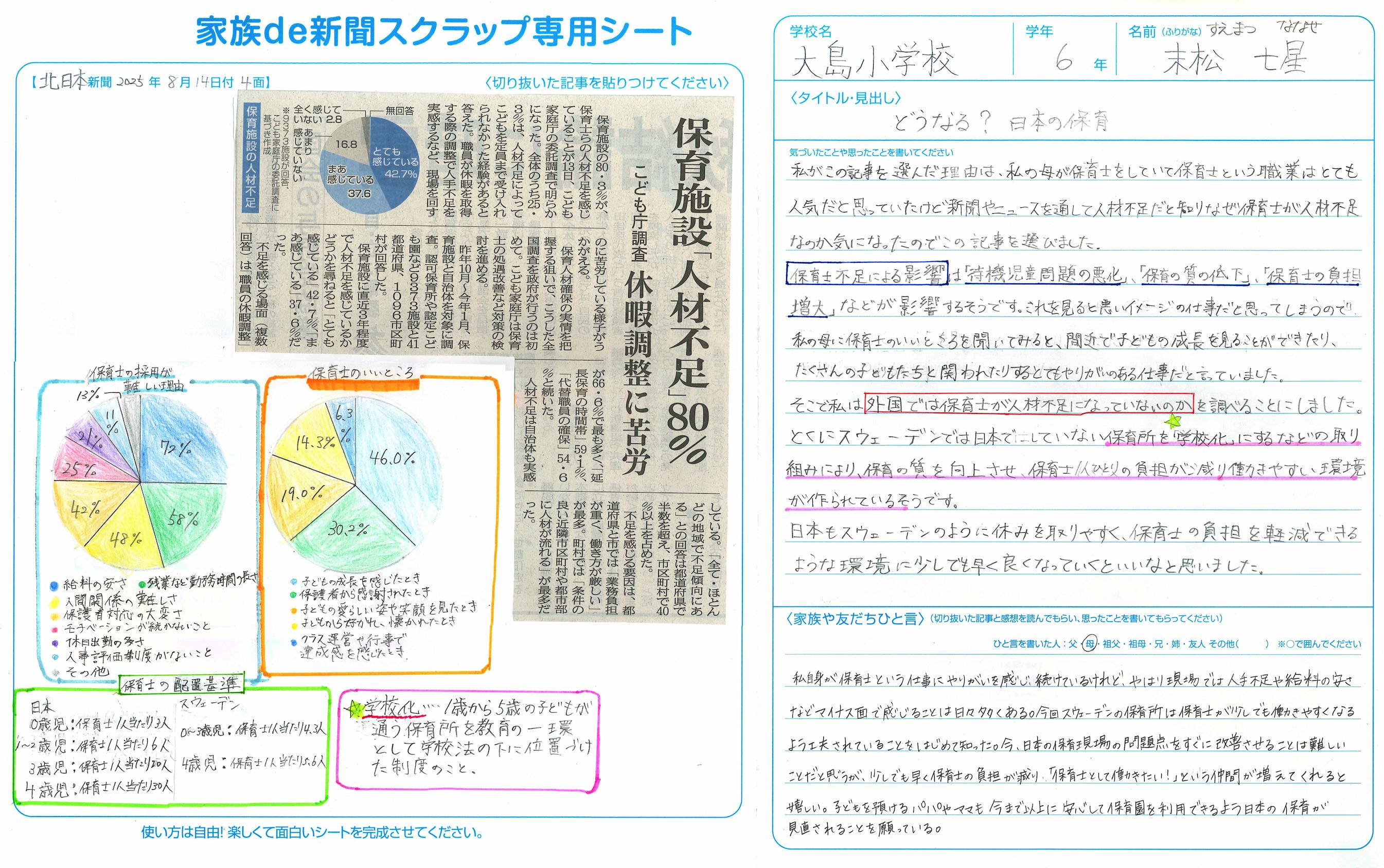 さらに、自分の意見をまとめるだけでなく、これから自分がどう行動していくべきかということにまで触れられていました。記事が皆さんの生活に大きな影響を与えていることが感じられました。