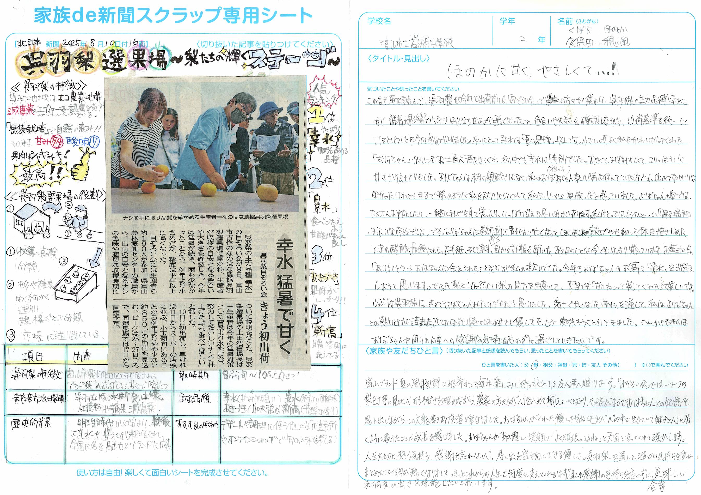 2025年度の「わたしの新聞コンクール」は、「かべ新聞」「家族de新聞スクラップ」「新聞感想文」の3部門で応募を受け付けました。