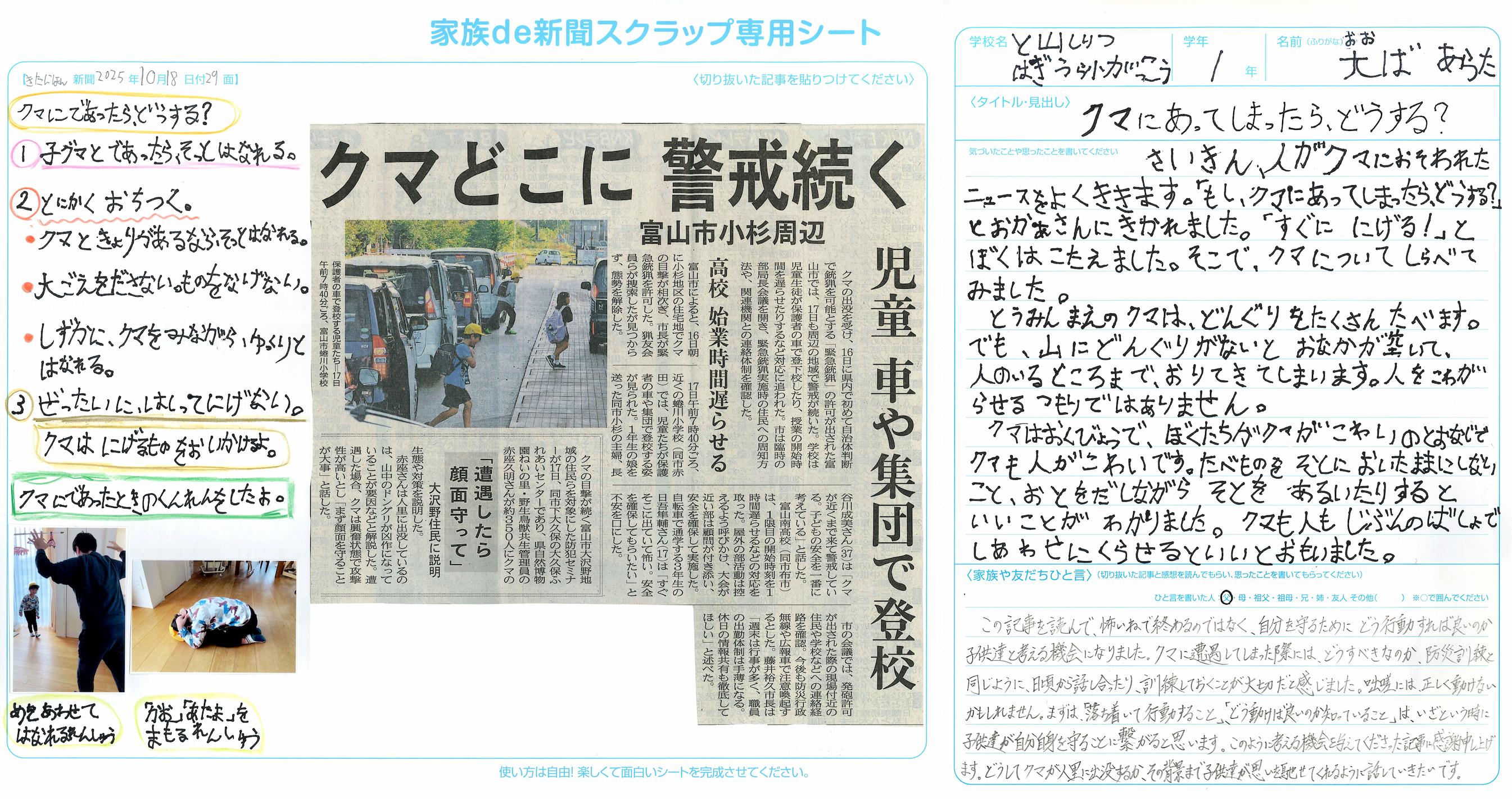 また、災害への対応には、いろんな人の立場に立つことが必要だと思います。お年寄りや小さな子ども、体が不自由な人、外国から来た人など、みんなが安心して避難できるようにするには、周りの人への思いやりが大切です。困っている人に声をかけ、手伝ったりすることが、みんなの命を守ることにつながると思います。